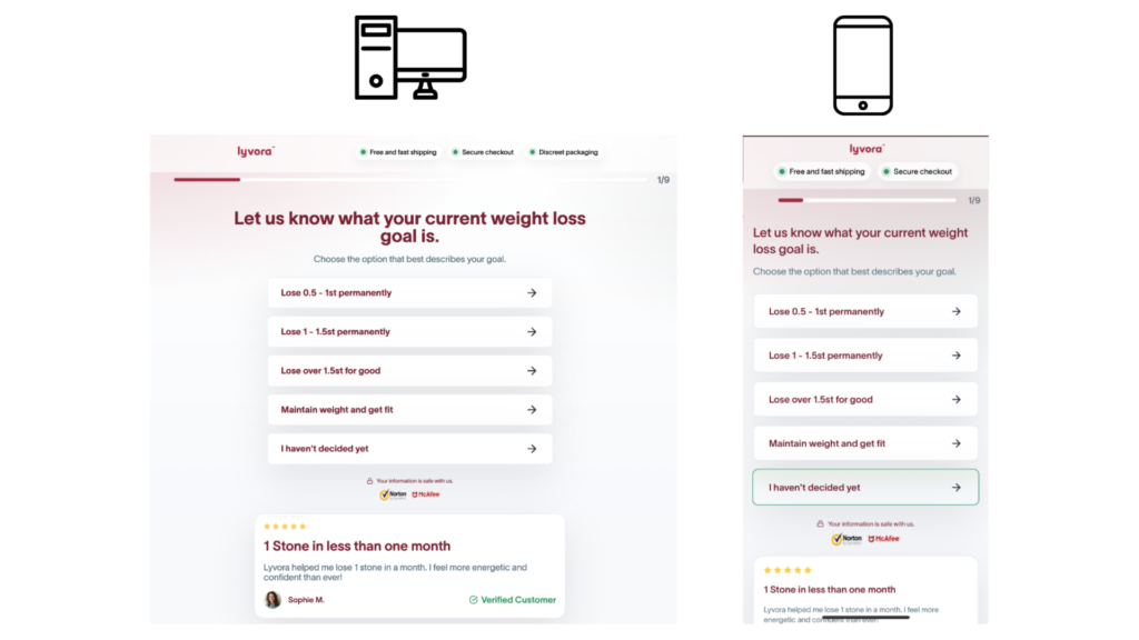 Through the official website, before purchasing Lyvora, you will be directed to a short, personalised quiz. You will answer a few questions about your body, your current weight, and your individual weight loss goals.